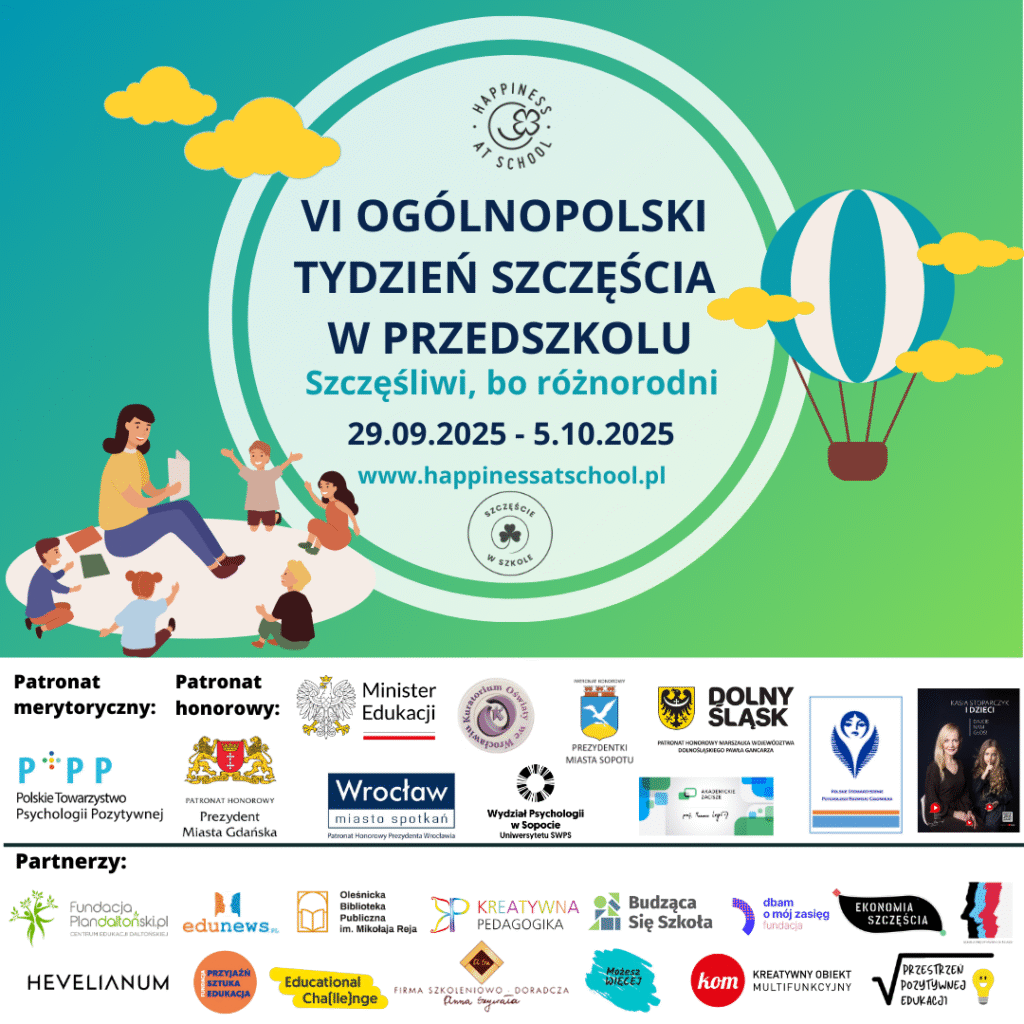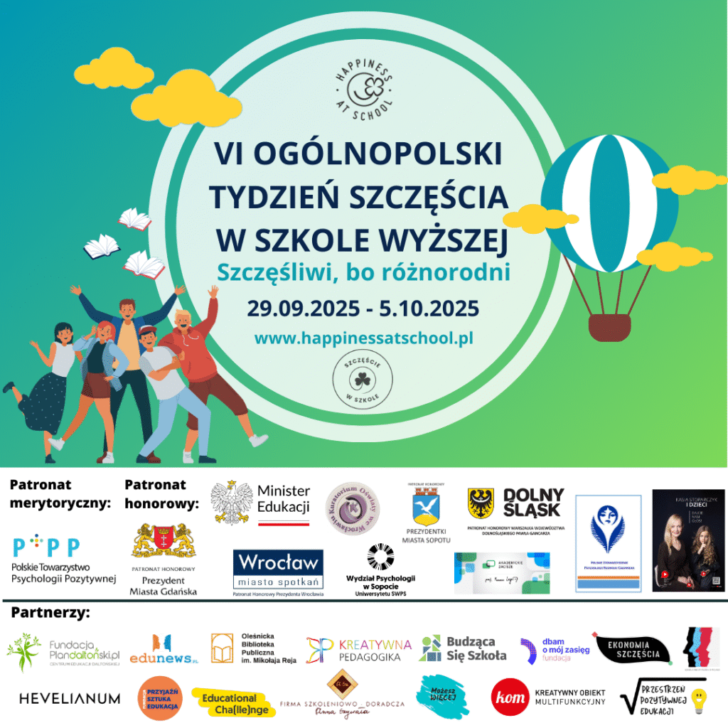 Znajdziesz tu plakaty i zaproszenia do udziału w VI Ogólnopolskim Tygodniu Szczęścia w Szkole:) Świętować możemy przez cały rok!
