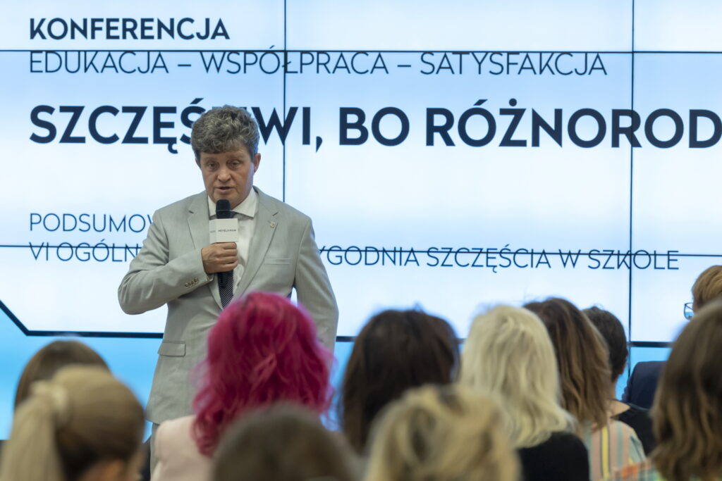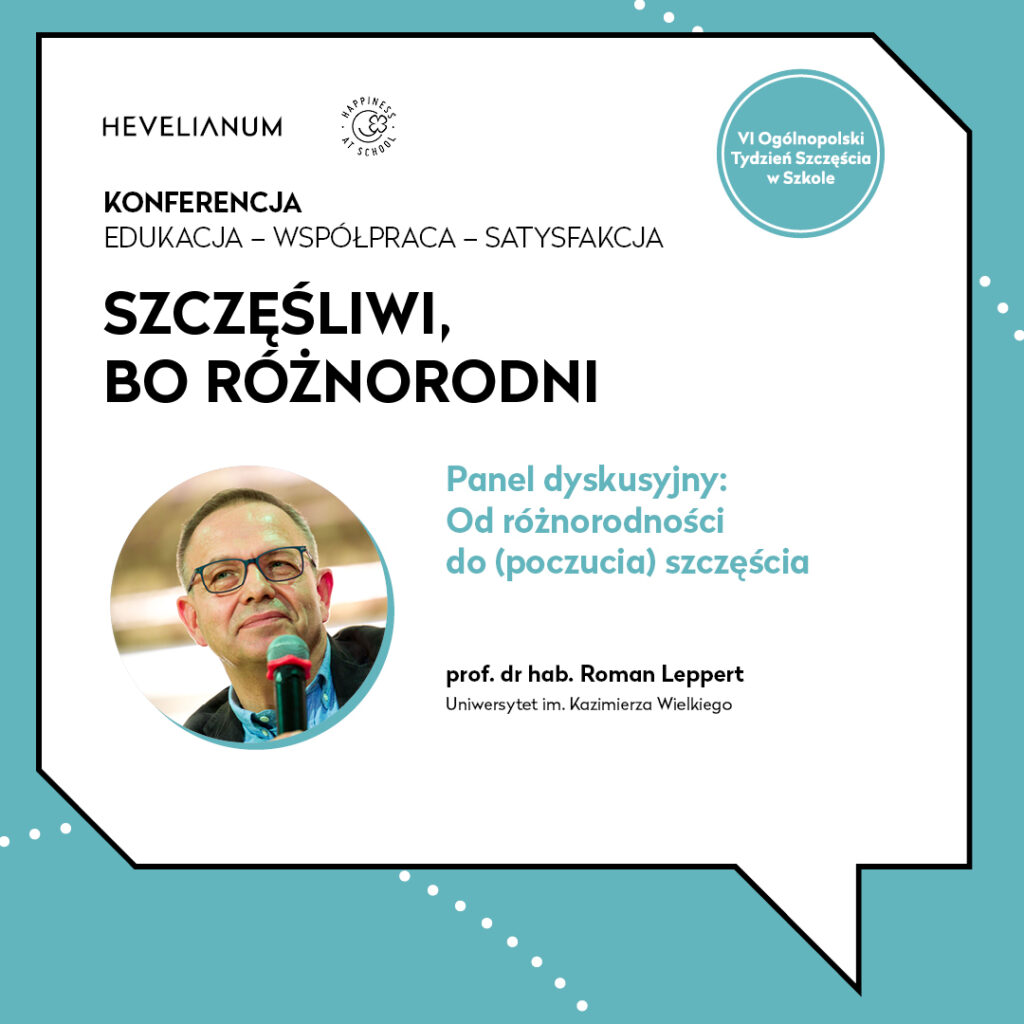 Druga osoba to prof. dr hab. Roman Leppert, ceniony pedagog, wykładowca na Uniwersytecie Kazimierza Wielkiego w Bydgoszczy, twórca Akademickiego Zacisza. Profesor przedstawił kontekst III Ogólnopolskiego Tygodnia Szczęścia w Szkole, lokując go w pedagogii pozytywnej i w pedagogii publicznej. Pedagogia to zbiór refleksji, badań i praktyk edukacyjnych, zaś pedagogia pozytywna odnosi się do nich wszystkich – lokując szczęście i dobrostan w samym ich centrum.