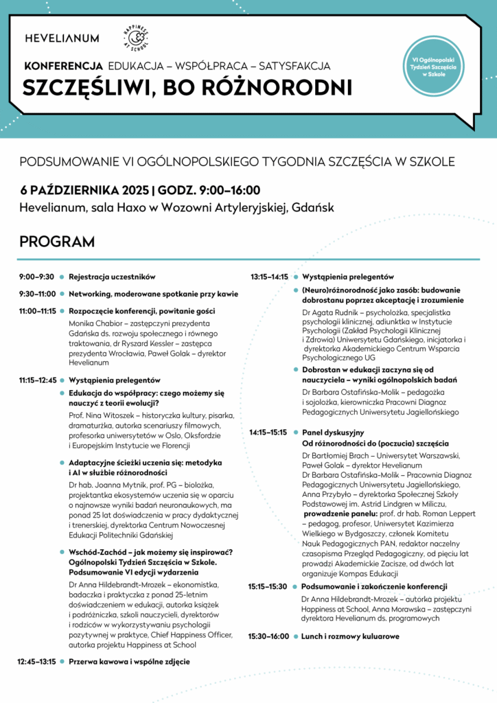 10.00 – 10.10 – dr Anna Hildebrandt-Mrozek, Happiness at School – rozpoczęcie konferencji, powitanie gości (10 minut)