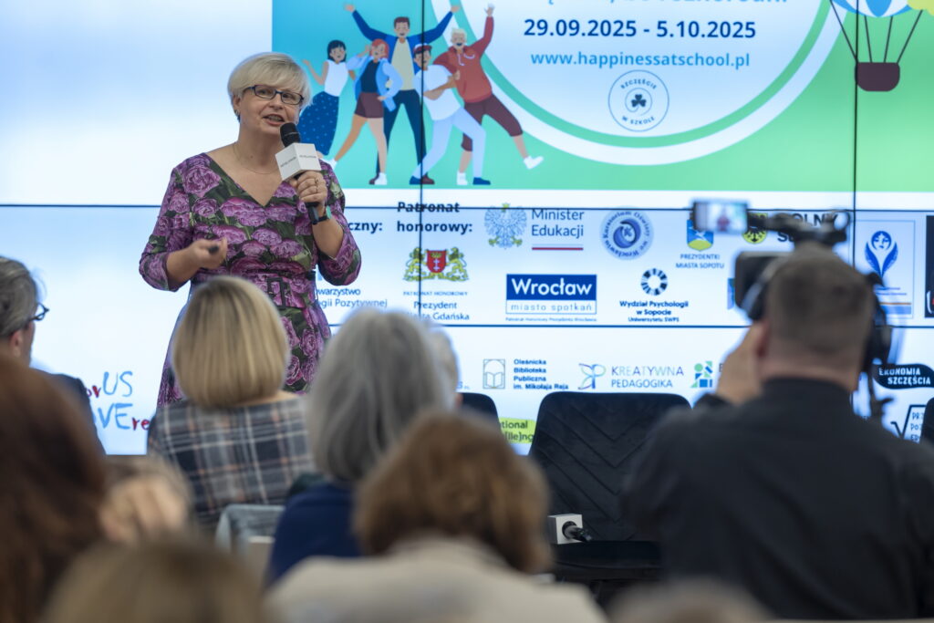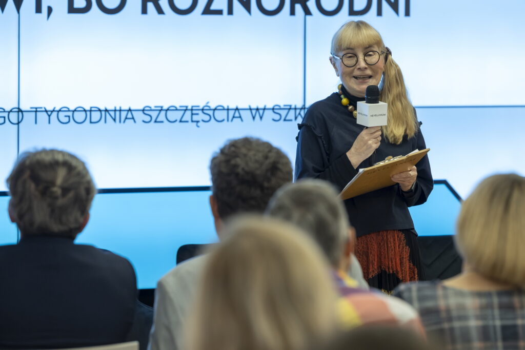 Bianka Czapnik, uczennica Szkoły Podstawowej nr 77 im. T. Różewicza we Wrocławiu, opowiedziała, jak znalazła informacje o wydarzeniu i przekonała swoich nauczycieli do wzięcia udziału w imprezie. Miała w swoim otoczeniu takie osoby, które jej zaufały i dały zielone światło. Sama się aktywnie włączyła, a efektem tego było celebrowanie Tygodnia Szczęścia w całej szkole. To, co ją najbardziej zaskoczyło i wzruszyło, to podziękowania, które otrzymała od uczniów z innych klas. To było dla niej prawdziwe wyróżnienie.